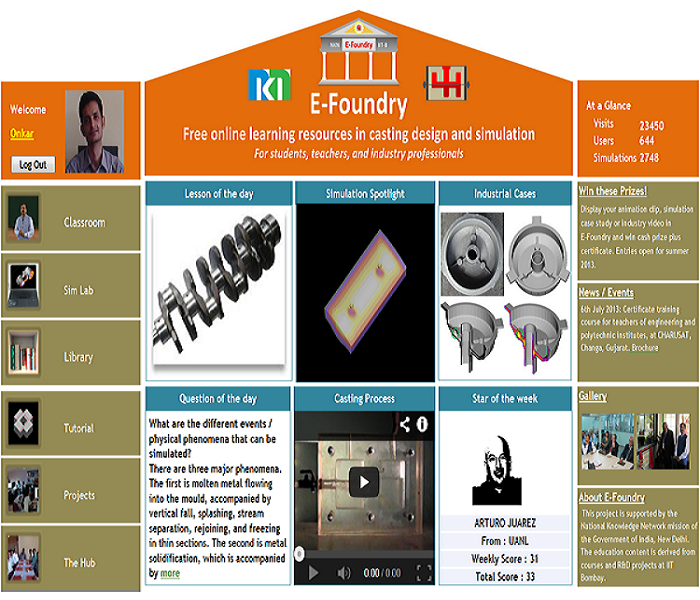 E-Foundry (http://efoundry.iitb.ac.in) provides teachers, students and casting industry professionals free access to teaching content in casting design and simulation developed at IIT Bombay. Metal Casting Industry